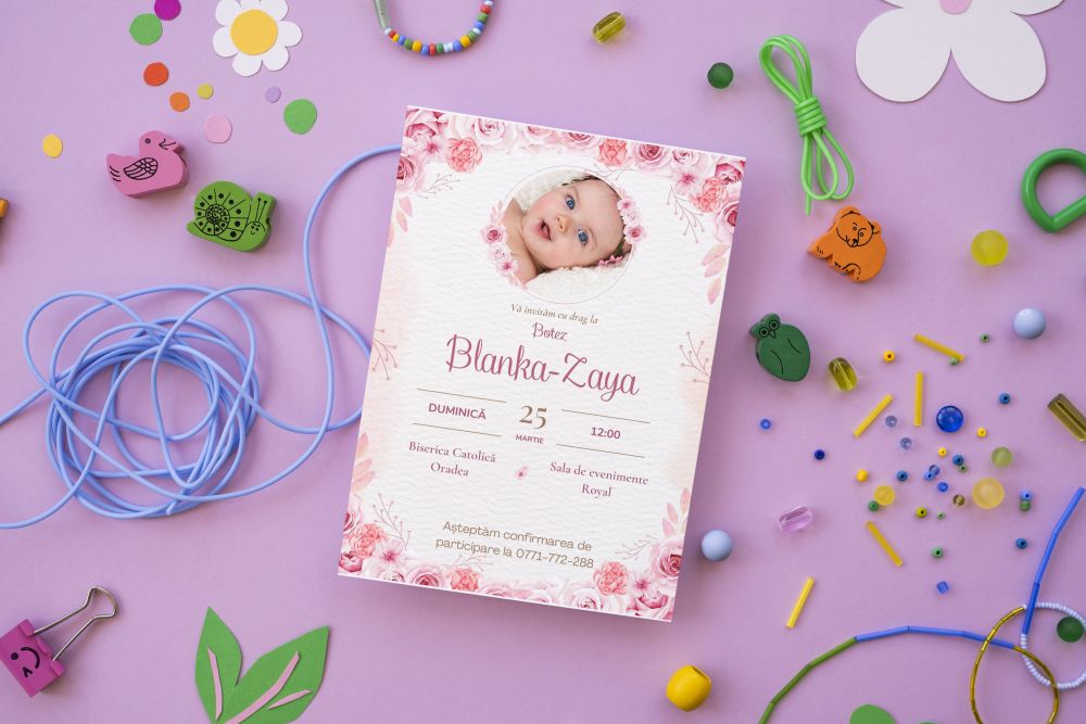 Botezul unui bebeluș este un moment deosebit în viața unei familii – o ocazie intimă și emoționantă pe care ne dorim să o păstrăm mereu în suflet. Tocmai de aceea, este important ca invitația să reflecte încă de la început frumusețea acestei zile speciale.